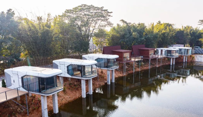 網(wǎng)紅民宿倉(cāng)通常融合了現(xiàn)代感與自然風(fēng)光,為游客提供了一個(gè)既舒適又獨(dú)特的住宿環(huán)境。例如,有的網(wǎng)紅民宿倉(cāng)采用了太空艙的設(shè)計(jì),外觀充滿未來(lái)科技感,內(nèi)部裝修簡(jiǎn)約而不失格調(diào),各種設(shè)施一應(yīng)俱全,讓游客在享受科技帶來(lái)的便利的同時(shí),也能感受到大自然的寧?kù)o與美